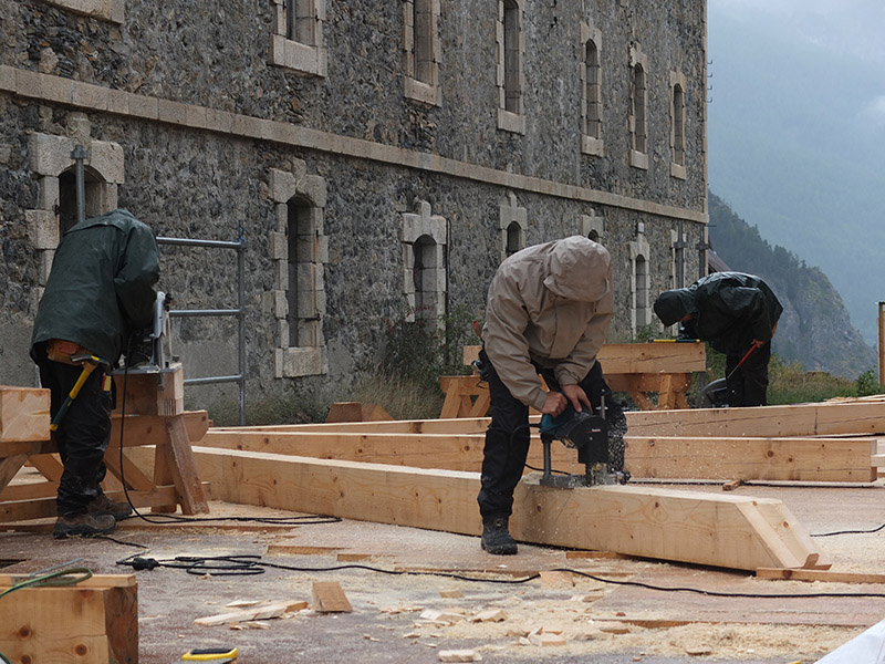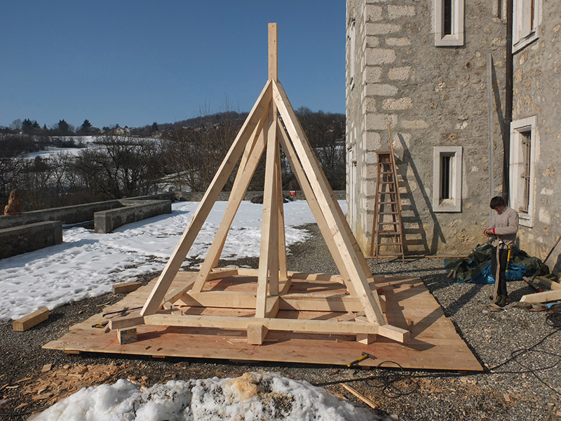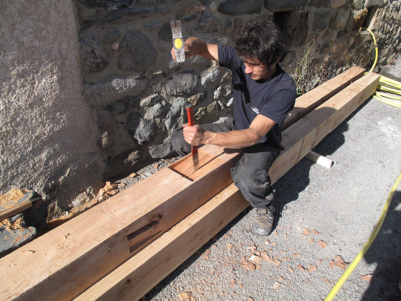Maison de Hautetour. Plans de la nouvelle charpente. Maison de Hautetour. Taille des embrèvements à la bisaigüe. Maison de Hautetour. Double embrèvement. Maison de Hautetour. Montage à blanc d'une ferme. Maison de Hautetour. Assemblage des sablières des tours rondes à double queue d'arronde. Maison de Hautetour. Panne ronde à dévers. Maison de Hautetour. Montage d'une tour ronde à blanc. Maison de Hautetour. Montage de la tour rectangulaire à blanc. Maison de Hautetour. Manutention des bois. Maison de Hautetour. Assemblage de la charpente. Maison de Hautetour. Manutention des bois. Maison de Hautetour. Assemblage de la charpente. Maison de Hautetour. Assemblage de la charpente. Maison de Hautetour. Assemblage de la charpente. Maison de Hautetour. Assemblage de la charpente. Maison de Hautetour. Tour carré: balancement des coyaux, face aplomb. Maison de Hautetour. Tour ronde: déjoutement des empanons. Maison de Hautetour. La charpente terminée. Maison de Hautetour. La charpente terminée. Maison de Hautetour. La charpente terminée. Maison de Hautetour. La charpente terminée. Fort du Randouillet, casernement n°13. Plans de charpente. Fort du Randouillet, casernement n°13. Mise sur ligne et piquage des bois. Fort du Randouillet, casernement n°13. Assemblage de la charpente. Fort du Randouillet, casernement n°13. Vue d'ensemble du chantier. Fort du Randouillet, casernement n°13. La taille par tous les temps... Fort du Randouillet, casernement n°13. Montage de la charpente. Fort du Randouillet, casernement n°13. Fin de journée sur le chantier. Fort du Randouillet, casernement n°13. Eclaircie Fort du Randouillet, casernement n°13. Fort du Randouillet, casernement n°13. Fort du Randouillet, casernement n°13. Trait de jupiter. Fort du Randouillet, casernement n°13. Vue du casernement n°12. Abbaye d'Ambronay, taille du clocheton en chêne. Abbaye d'Ambronay, taille du clocheton en chêne. Abbaye d'Ambronay, taille du clocheton en chêne. Abbaye d'Ambronay, taille du clocheton en chêne. Abbaye d'Ambronay, levage. Abbaye d'Ambronay, levage. Abbaye d'Ambronay, clocheton en chêne. Château de Montrottier. Tour carrée sud Château de Montrottier. Tour carrée sud Château de Montrottier. Tour carrée sud Château de Montrottier. Tour carrée sud Château de Montrottier. Tour carrée sud Château de Montrottier. Echauguette nord-est